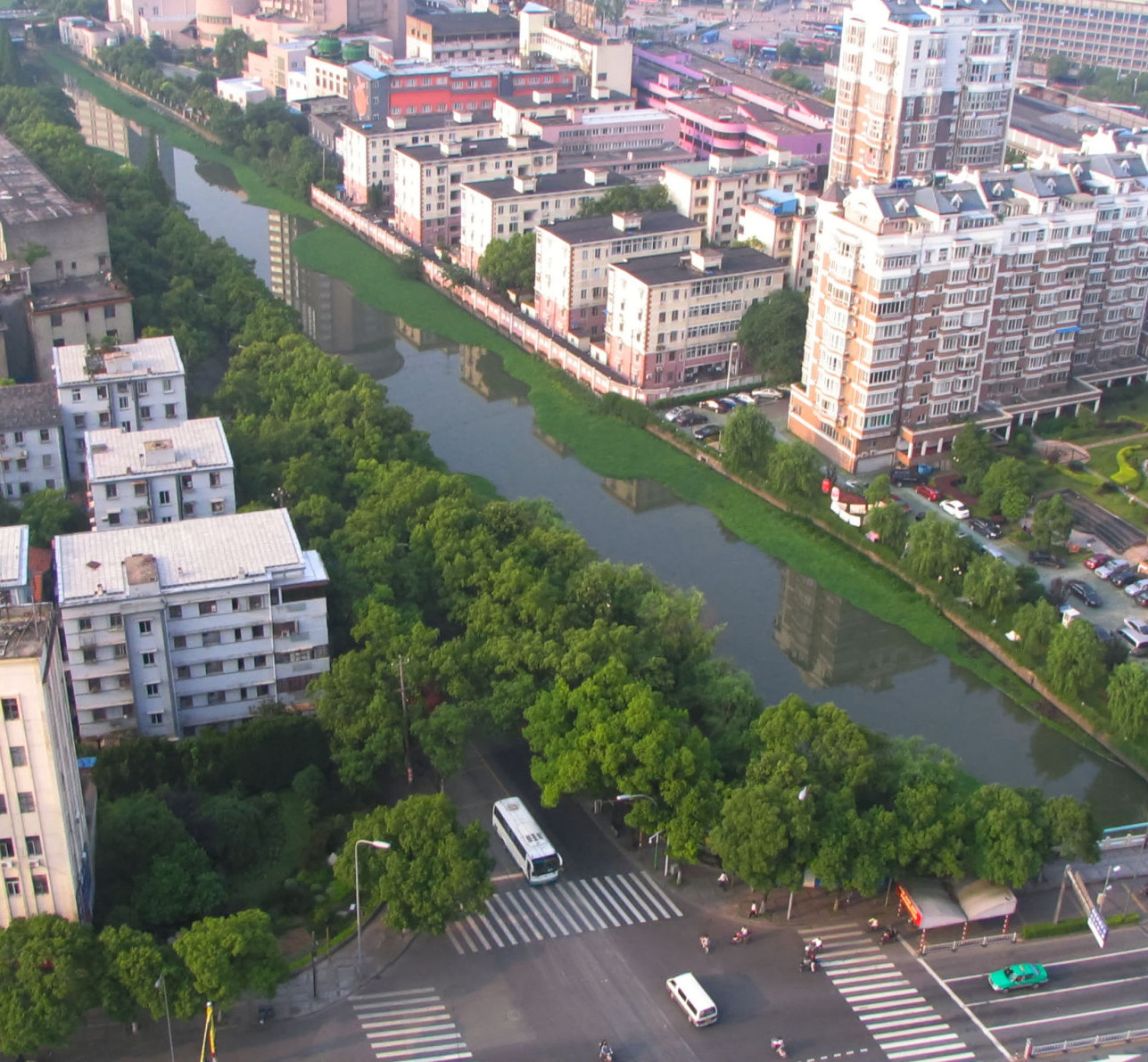 View from my hotel room overlooking a side stream of the Fenghua River. It's a great place for a stroll with plenty of statues and art along the shoreline.