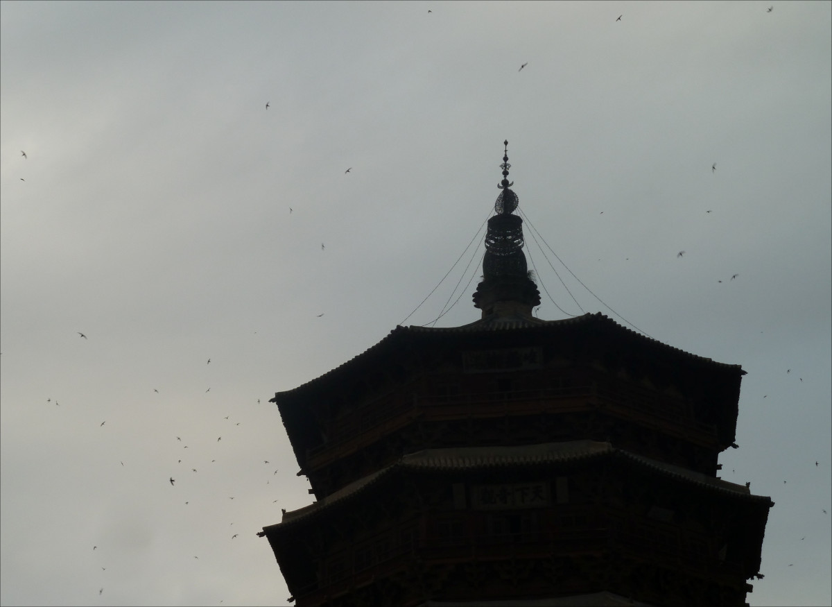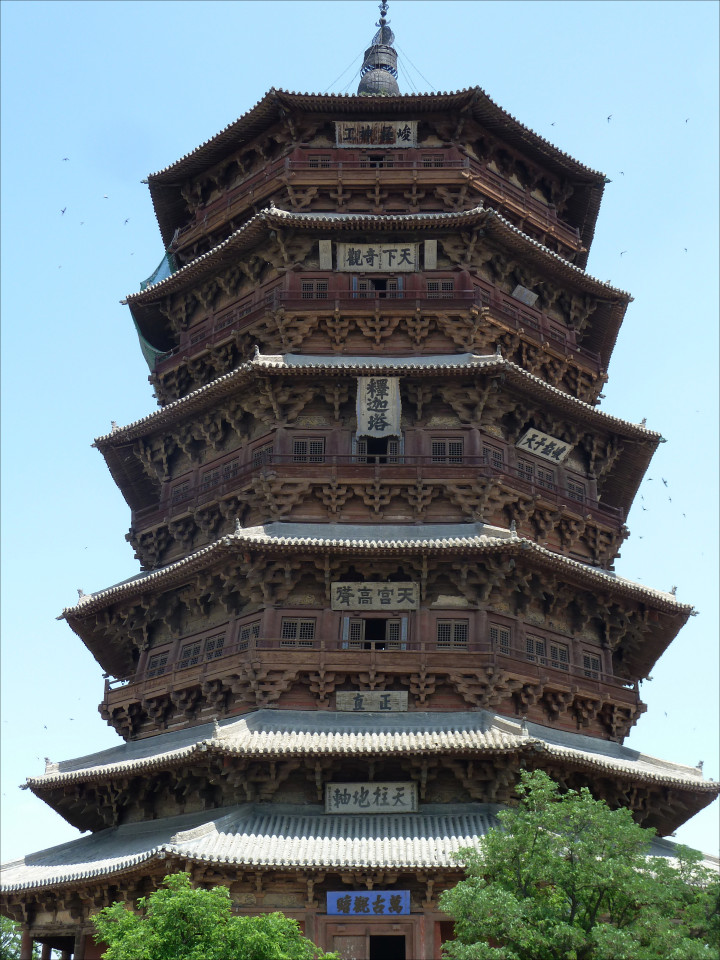 It was built in 1056 and goes by many names: Yingxian Pagoda, Sakyamuni Pagoda of Fogong Temple, or simply Muta (木塔 mùtǎ = wooden pagoda).