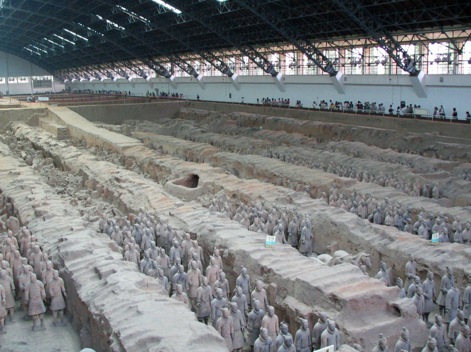 Built in the late third century BCE, the terracotta army is a mindboggling example of human creativity and ability. When uncovered, the figures were all crushed as seen in the back of the rows.