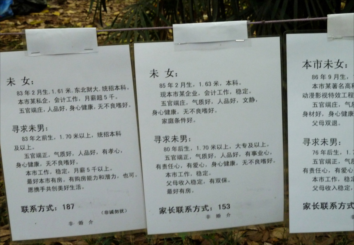 These types of marriage markets can be found in many parks in every city. Usually parents or close relatives go there to find a possible match for their children. When it looks promising, they set up a date for the young people right away.