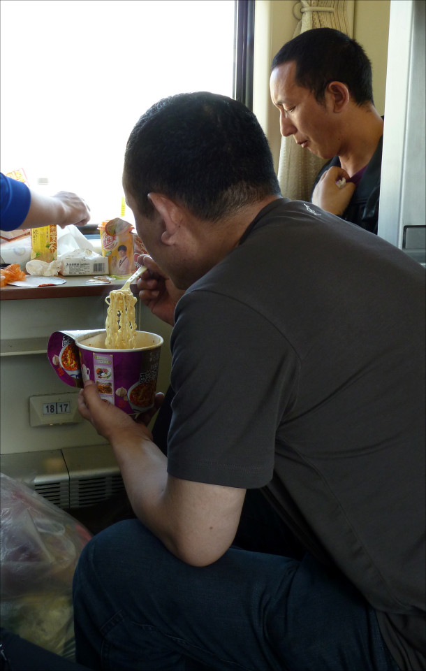 Our "roommates". Would you believe that they are Buddhist monks on vacation?? Nice guys and happy to share some of their ample goodies. Conversation was mostly through very basic Chinese, gestures, and a lot of photos on our phones.