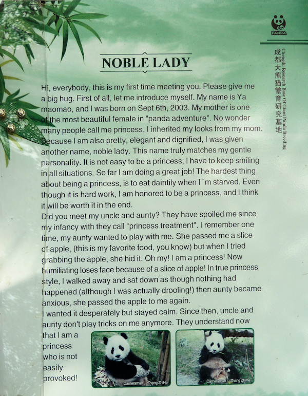 Any questions about these funny fellows? There are lots of humorous and informative signs everywhere! For in-depth information check out the Chengdu Research Base of Giant Panda Breeding website.